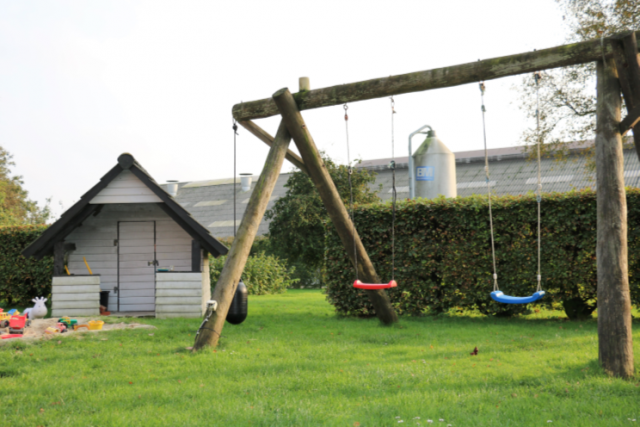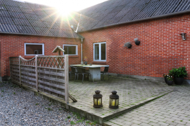 Foran indgangen til Vestervang Bed & Breakfast finder I en dejlig terrasse med havebord og -stole. Ved stuehuset er der også legeplads med legehus, gynger og sandkasse, som børn meget gerne må benytte. Vi betragter dog resten af haven som privat.